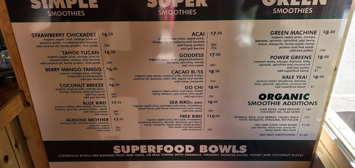 Nestled in the heart of South Lake Tahoe, The Free Bird is a charming coffee shop that has quickly become a local favorite. Located at 2753 Lake Tahoe Blvd, this cozy spot is more than just a place to grab your morning brew; it's a haven for coffee lovers and health enthusiasts alike.